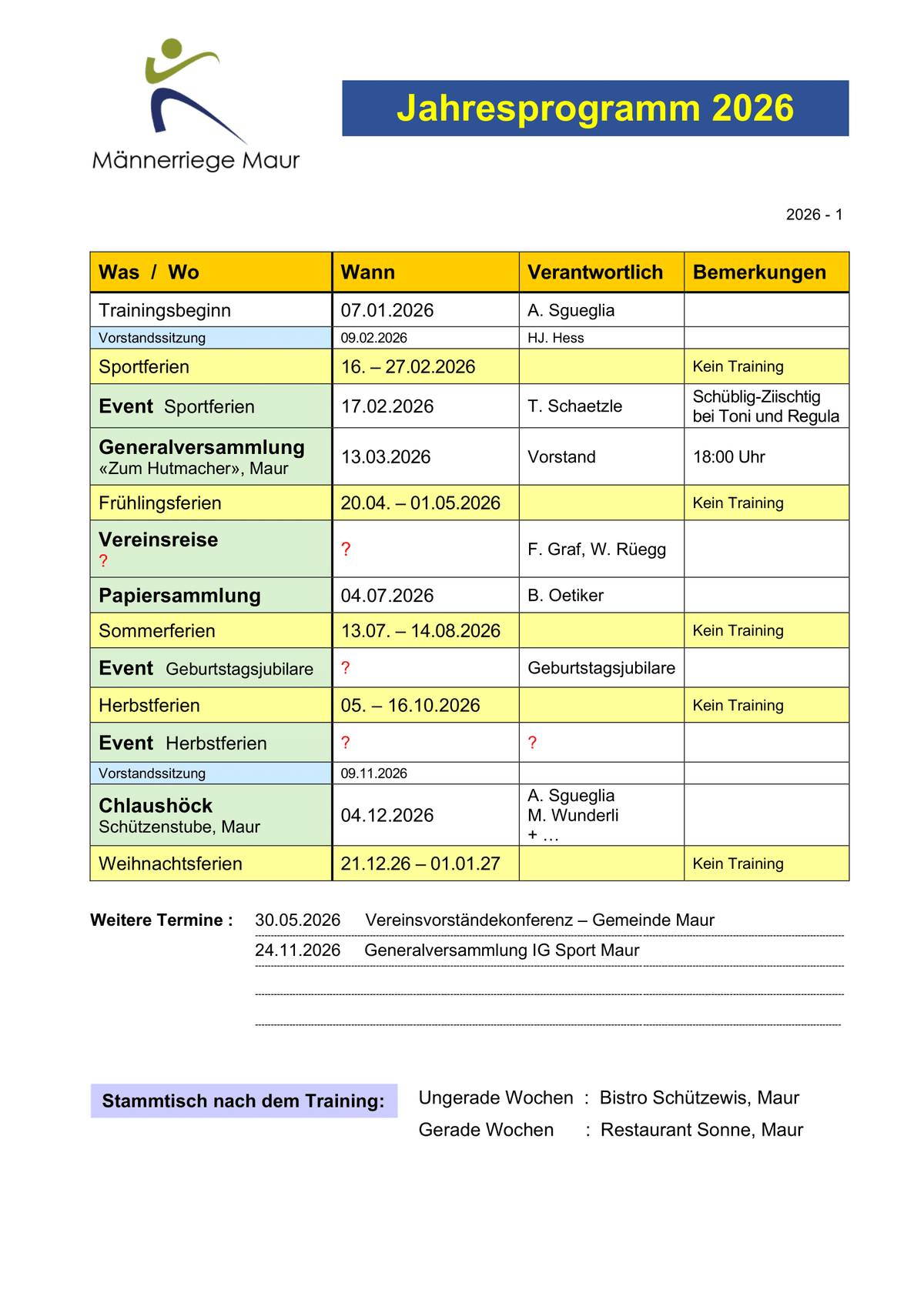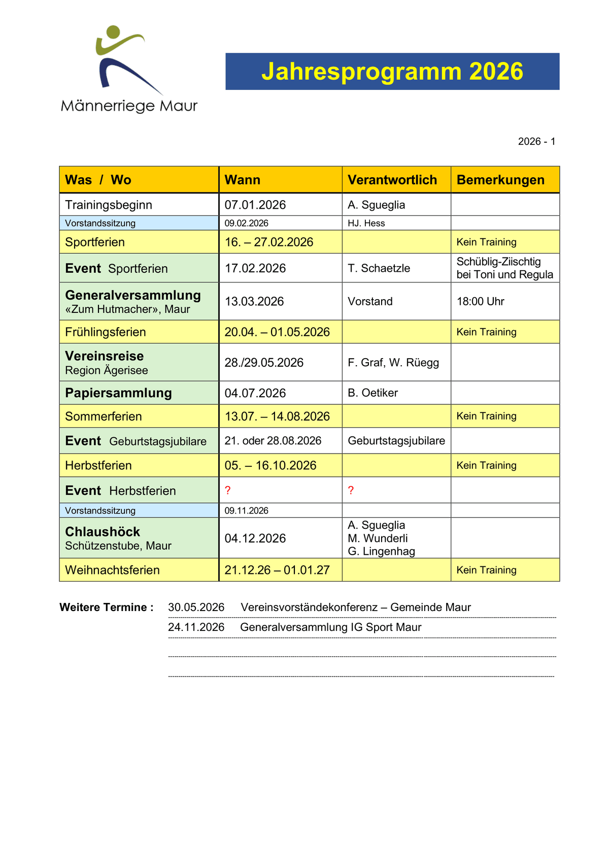 Jahresprogramm 2026